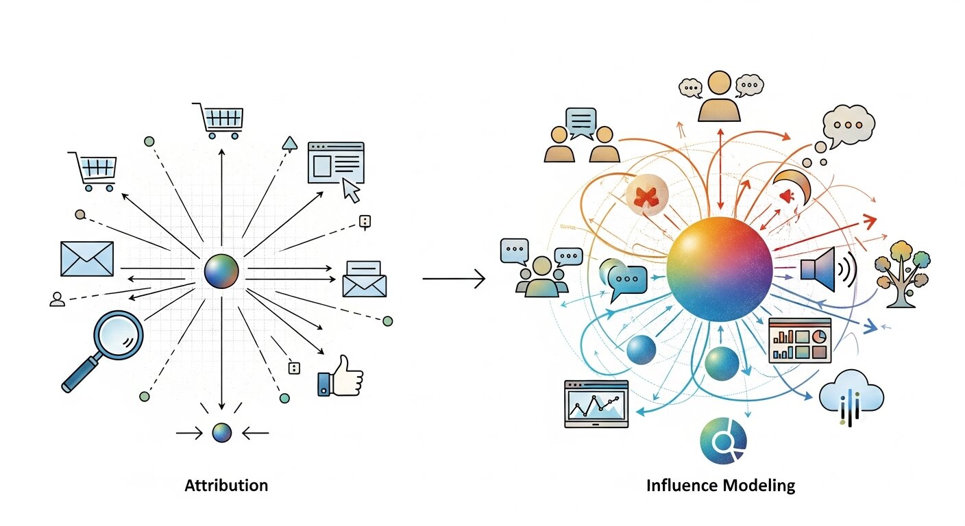 The shift from attribution to influence modeling represents more than a measurement evolution—it reflects a fundamental recognition of how marketing actually works.